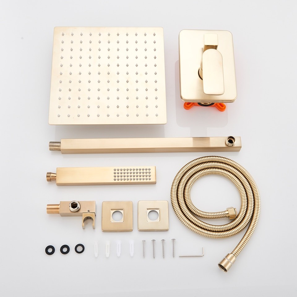 סט מקלחת יוקרתי מוכמן בקיר בגימור זהב מוברש.