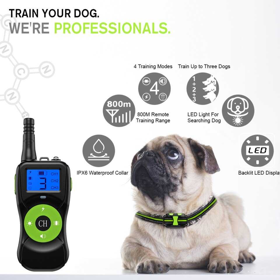 הקולר מגיע עם שלל תכונות למגוון שיטות אימון: אילוף כלבים בהלם חשמלי, אילוף כלבים ברטט, אילוף כלבים בקול, אימון באור.