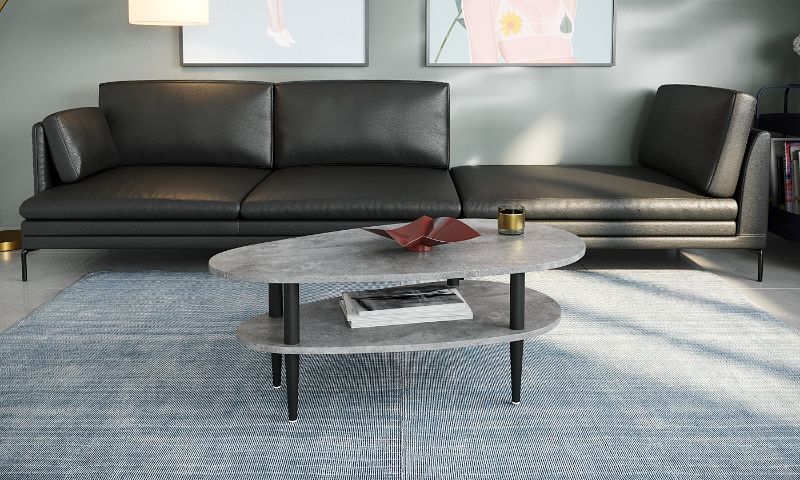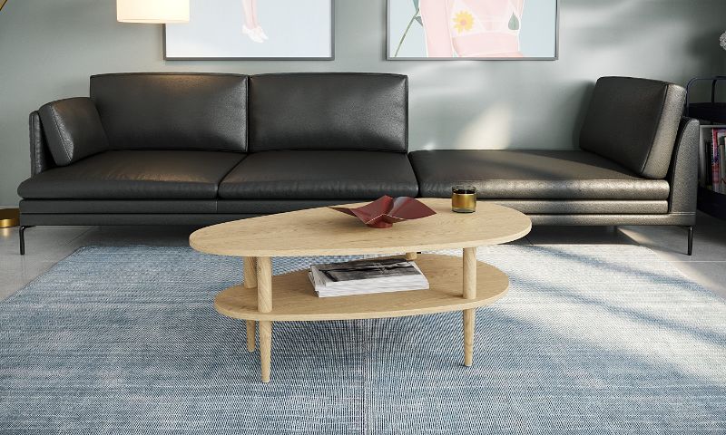שולחן סלון מודרני בצורת טיפה עם מדף תחתון מעוצב