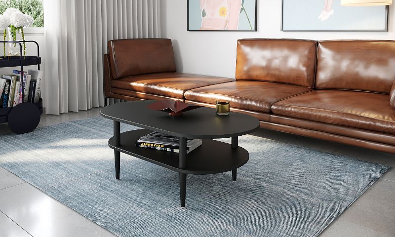 שולחן סלון מודרני מעוגל עם מדף תחתון מעוצב